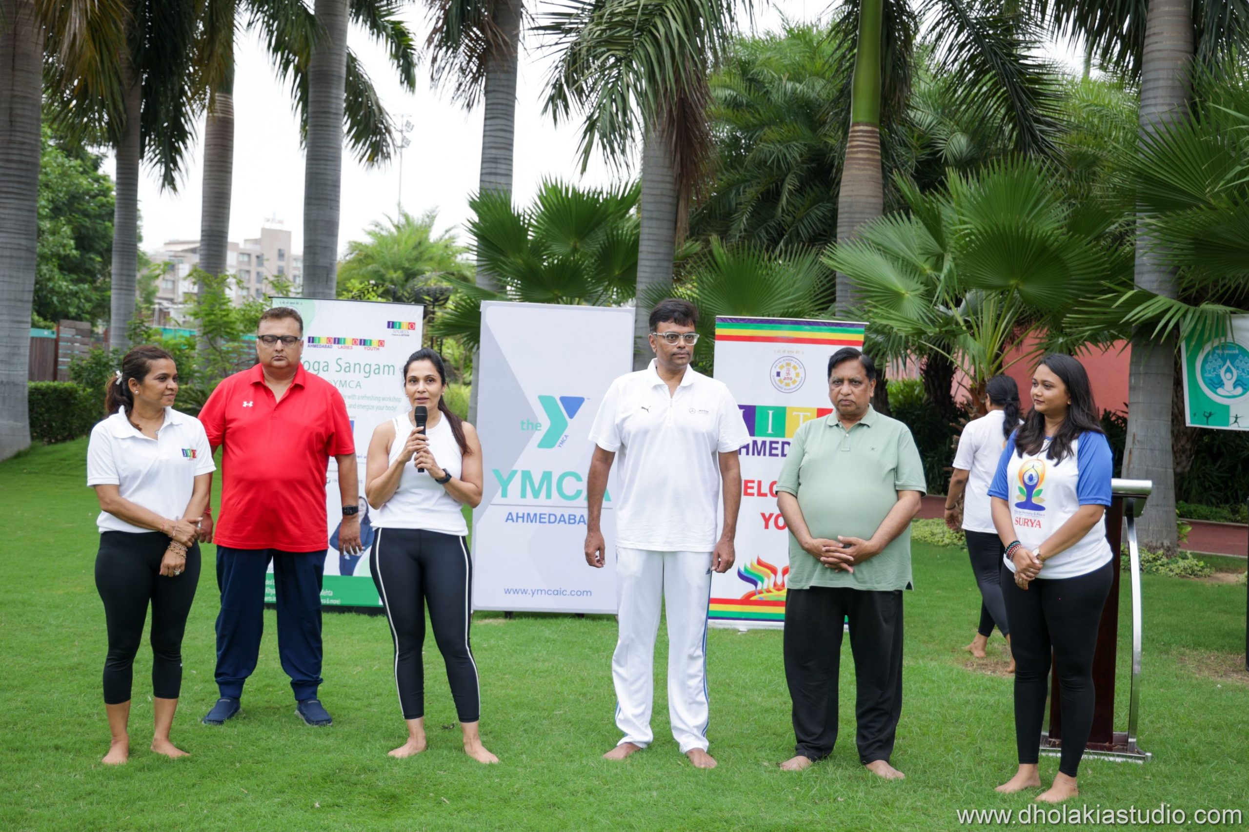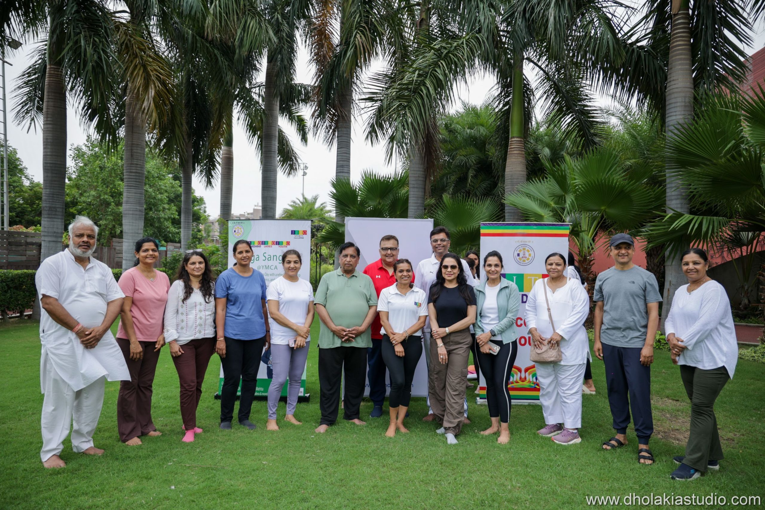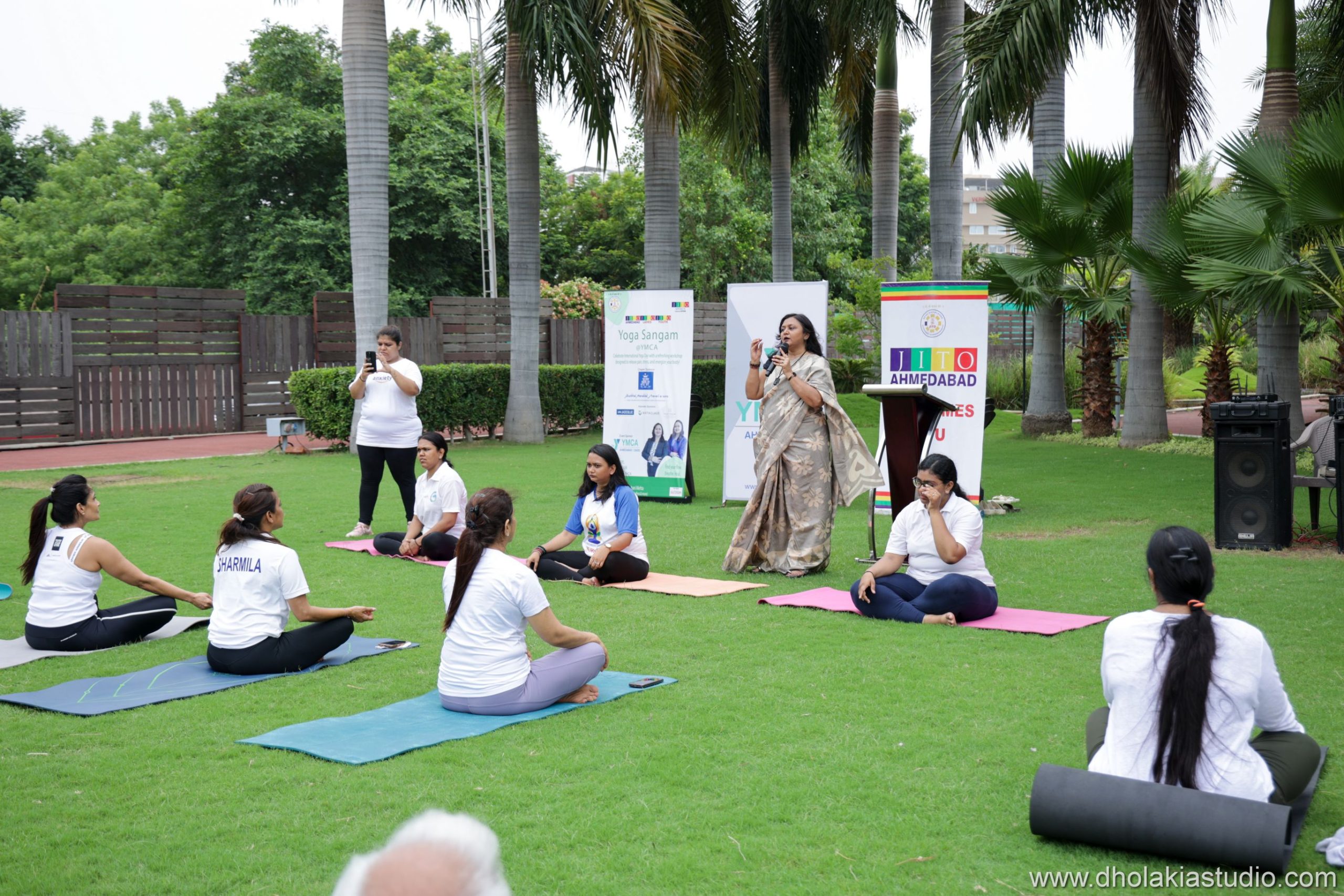 On the occasion ofInternational Yoga Day,JITO Ahmedabad, in collaboration with theJITO Ladies WingandJITO Youth Wing, successfully organized“Yoga Sangam @ YMCA”on Saturday, 21st June, from 8:00 AM to 9:00 AM at the serene Poolside Lawn ofYMCA Oasis, Ahmedabad. The event was a vibrant celebration of health and inner well-being, drawing together more than 100 enthusiastic participants from the community.